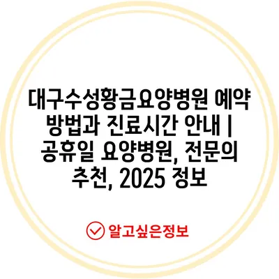✅ 대구수성황금요양병원의 예약 절차와 특별 진료시간을 알아보세요.