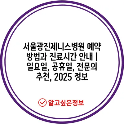서울광진제니스병원 예약 방법과 진료시간 공지 | 일요일, 공휴일, 전연락 추천, 2025 내용을 소개합니다.