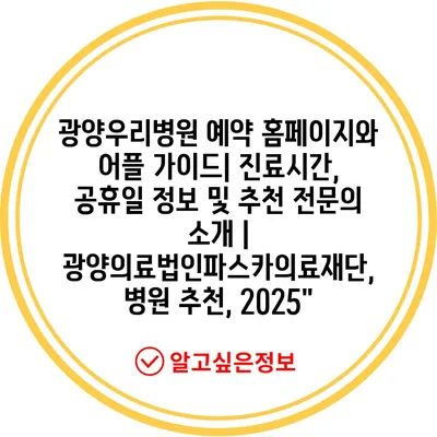 ✅ 광양우리병원 예약 방법과 진료 시간을 알아보세요.