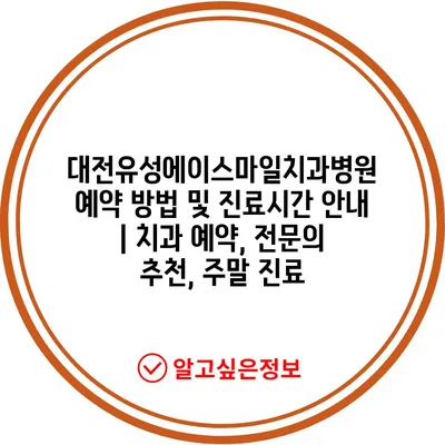 대전유성에이스마일치과병원 예약 방법 및 진료시간 공지 | 치과 예약, 전연락 추천, 주말 진료에 대해 자주 묻는 질문 TOP 5