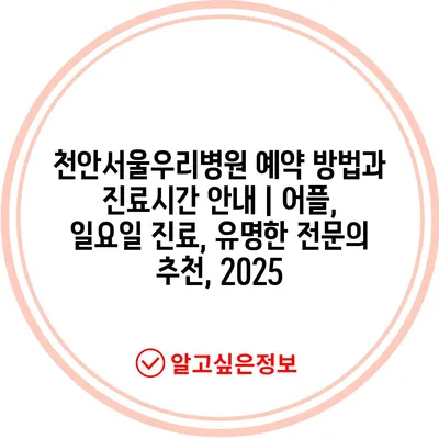 천안서울우리병원 예약 방법과 진료시간 공지 | 어플, 일요일 진료, 유명한 전연락 추천, 2025