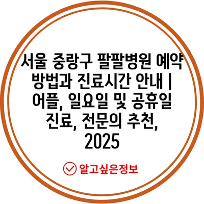 서울 중랑구 팔팔병원 예약 방법과 진료시간 안내 | 어플, 일요일 및 공휴일 진료, 전문의 추천, 2025