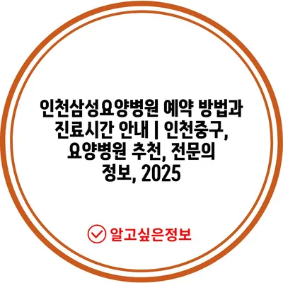 인천삼성요양병원 예약 방법과 진료시간 공지 | 인천중구, 요양병원 추천, 전연락 정보, 2025 에 대해 자주 묻는 질문 TOP 5