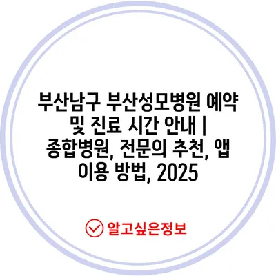 부산남구 부산성모병원 예약 및 진료 시간 공지 | 종합병원, 전연락 추천, 앱 이용 방법, 2025 에 대해 자주 묻는 질문 TOP 5