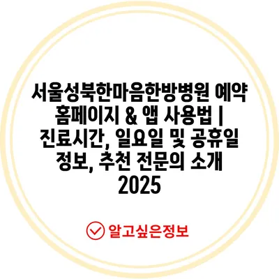 ✅ 서울성북한마음한방병원의 진료시간과 예약 방법을 알아보세요!