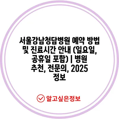 ✅ 서울강남청담병원의 진료시간과 예약 방법을 알아보세요.