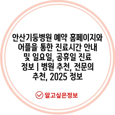 안산기둥병원 예약 홈페이지와 어플을 통한 진료시간 공지 및 일요일, 공휴일 진료 정보 | 병원 추천, 전연락 추천, 2025 정보 에 대해 자주 묻는 질문 TOP 5