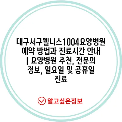 ✅ 대구서구웰니스1004요양병원의 진료시간과 예약 방법을 지금 바로 알아보세요!