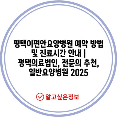 ✅ 평택이편안요양병원 예약 방법을 자세히 알아보세요.