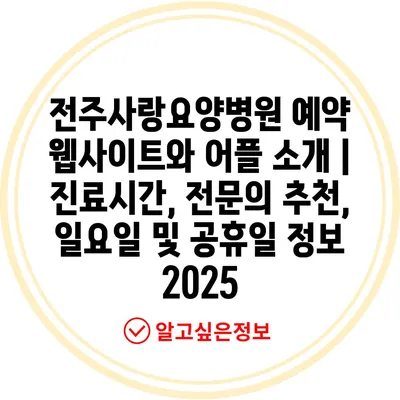 전주사랑요양병원 예약 웹사이트와 어플 소개 | 진료시간, 전연락 추천, 일요일 및 공휴일 정보 2025