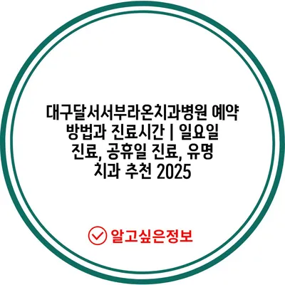 대구달서서부라온치과병원 예약 방법과 진료시간 | 일요일 진료, 공휴일 진료, 유명 치과 추천 2025