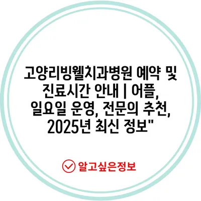 고양리빙웰치과병원 예약 및 진료시간 공지 | 어플, 일요일 운영, 전연락 추천, 2025년 최신 정보
