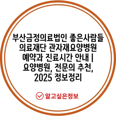 부산금정의료법인 좋은사람들 의료재단 관자재요양병원 예약과 진료시간 공지 | 요양병원, 전연락 추천, 2025 정보정리 에 대해 자주 묻는 질문 TOP 5