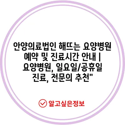 안양의료법인 해뜨는 요양병원 예약 및 진료시간 공지 | 요양병원, 일요일/공휴일 진료, 전연락 추천” 에 대해 자주 묻는 질문 TOP 5