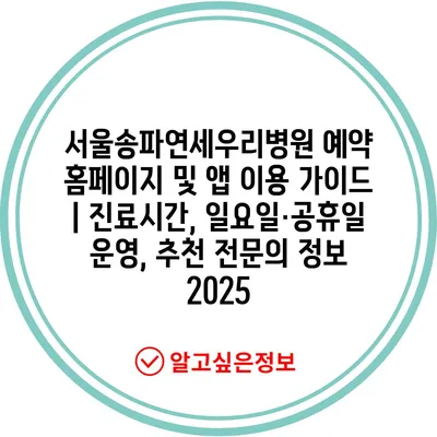 서울송파연세우리병원 예약 홈페이지 및 앱 이용 설명서 | 진료시간, 일요일·공휴일 운영, 추천 전연락 정보 2025 에 대해 자주 묻는 질문 TOP 5