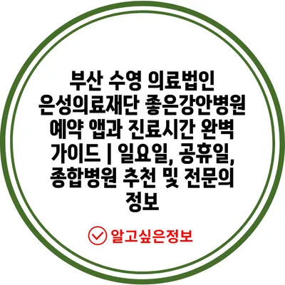 부산 수영 의료법인 은성의료재단 좋은강안병원 예약 앱과 진료시간 완벽 설명서 | 일요일, 공휴일, 종합병원 추천 및 전연락 정보 에 대해 자주 묻는 질문 TOP 5