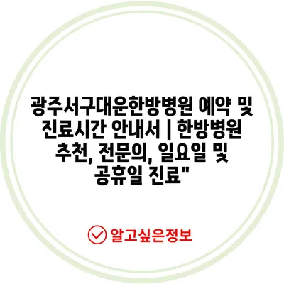 ✅ 광주서구대운한방병원의 진료시간과 예약 방법을 쉽게 알아보세요.