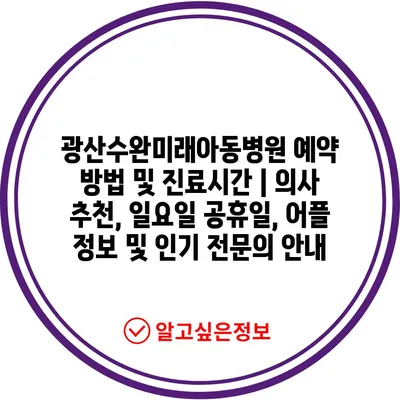 광산수완미래아동병원 예약 방법 및 진료시간 | 의사 추천, 일요일 공휴일, 어플 정보 및 인기 전문의 안내