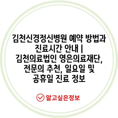김천신경정신병원 예약 방법과 진료시간 공지 | 김천의료법인 영은의료재단, 전연락 추천, 일요일 및 공휴일 진료 정보에 대해 자주 묻는 질문 TOP 5