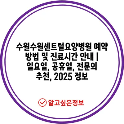 수원수원센트럴요양병원 예약 방법 및 진료시간 공지 | 일요일, 공휴일, 전연락 추천, 2025 정보에 대해 알아보겠습니다.