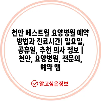 천안 베스트원 요양병원 예약 방법과 진료시간| 일요일, 공휴일, 추천 의사 정보 | 천안, 요양병원, 전문의, 예약 앱