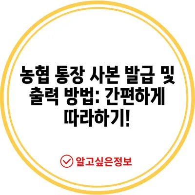 농협 통장 사본 발급 및 출력 방법: 간편하게 따라하기!