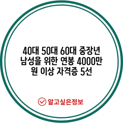 40대 50대 60대 중장년 남성을 위한 연봉 4000만 원 이상 자격증 5선