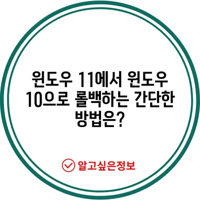 윈도우 11에서 윈도우 10으로 롤백하는 간단한 방법은?