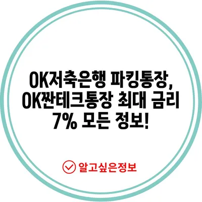 OK저축은행 파킹통장, OK짠테크통장 최대 금리 7% 모든 정보!